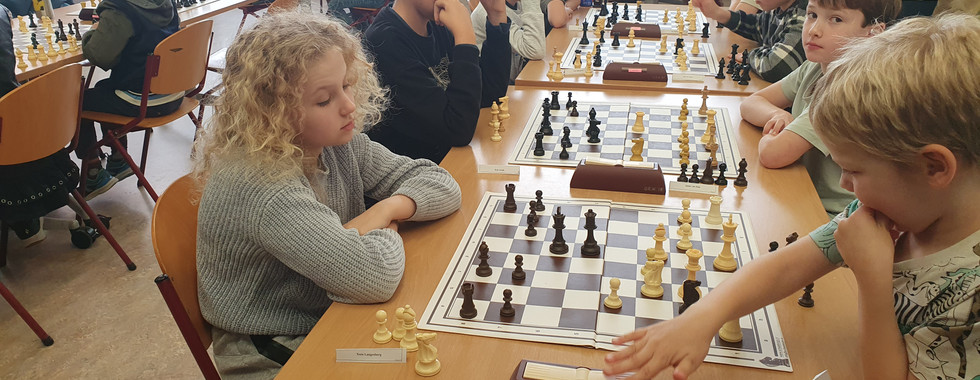 Voor de jongste kinderen hebben we een opstapje-groep. Arya, Jacob, Cas, Anne, Nina en Loef schaken nog niet zo lang, maar dankzij de steun van Meester Jeroen konden ze wel al meespelen. En ze deden net zo goed hun best als alle andere kinderen. Jacob won de groep dankzij een geheim wapen in de opening 🙂.
